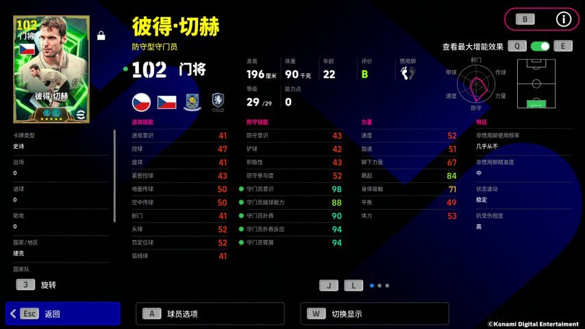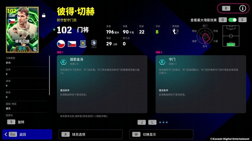 切赫增能属性为【固若金汤 +3】,守门能力的全面提升让他在门前稳如泰山!