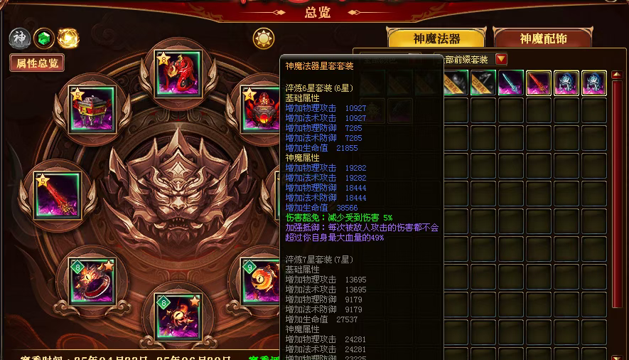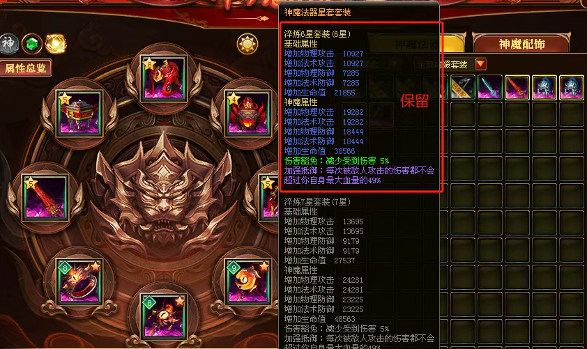 将军们可通过淬炼升星提升神魔法器的属性,同时还可激活对应神魔星套效果来提升基础属性和神魔战场属性。