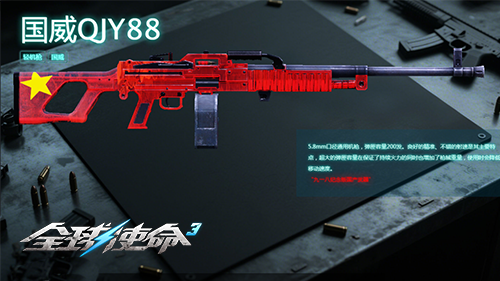 国威QJY88在《全球使命3》里不只是一把数据亮眼的强力武器,更是中国军工创新精神的生动体现。如此精良的武器,绝对值得你收入囊中!全视角PVE射击网游《全球使命3》的新版本“龙鳞战姬”现已正式上线!在这里,你能体验到最震撼的科幻战争场景,感受最具特色的全视角真实动作射击战斗,还有各类深度十足、热血刺激的PVE玩法等你来挑战。想要了解更多游戏最新资讯,欢迎登录游戏官网,或关注《全球使命3》的官方微信号与官方微博!