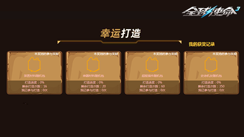 幸运打造玩法新颖有趣,惊喜连连!每件道具的打造次数各不相同,当剩余打造次数变为0时,系统会从参与过打造的玩家中抽取一人作为获奖者,玩家付出的打造次数越多,获奖概率就越高。当道具的打造进度达到100%时,将进入倒计时开奖阶段,并最终公布获奖名单。道具下方会清晰显示剩余打造次数和当前进度,玩家可以多次进行打造操作,打造次数分为1次、5次、10次以及包揽剩余次数四个档次,选择包揽剩余次数能够大幅提升获奖几率。此外,每次完成打造后,玩家还能获得参与奖。12月8日23:59:59,幸运打造的道具刷新功能将关闭,之后玩家仍可继续进行打造,但超过活动时间消耗的积分将不再计入排行榜。