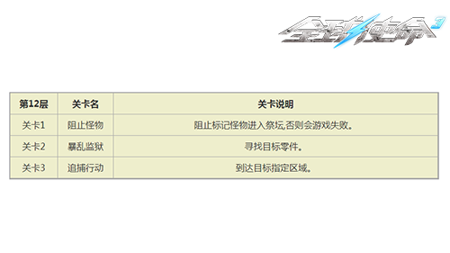 巅峰战役第十二层包含三个风格各异的关卡,每个关卡的目标都很清晰,不过过程中潜藏着不少危险。第一关“阻止怪物”是关键挑战,战场上会出现带有特殊标记的怪物,玩家必须在它们到达祭坛前将所有标记怪物消灭干净,如果有任何一只标记怪物成功进入祭坛,游戏就会直接失败,建议在祭坛周边布置交叉火力网,并且优先集中攻击移动速度快的怪物。第二关“暴乱监狱”主要围绕探索和收集展开,监狱里面的路线错综复杂,还有潜伏的敌人会突然发动袭击,需要团队分工去搜寻目标零件,同时留意防备背后的偷袭。第三关“追捕行动”需要玩家快速到达指定的区域,在行进的路上会遇到敌人的围追堵截,保持边移动边战斗的状态能够有效降低所受伤害。