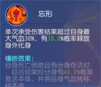 提升角色的生命值,并且在角色被复活时有概率自动释放一次身外化身。