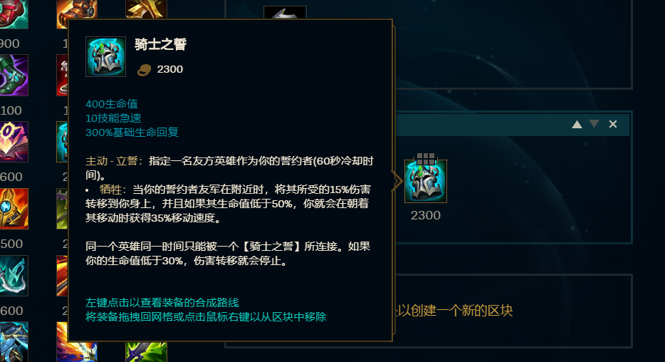 从锤石的属性来看,能发现他是个偏向保护型的英雄。尽管锤石前期身板较脆,但成长属性十分出色,到了后期足以变得肉坦起来承担伤害,所以为他选择【骑士之誓】这件装备来帮助ADC分担伤害就显得很有必要了。
