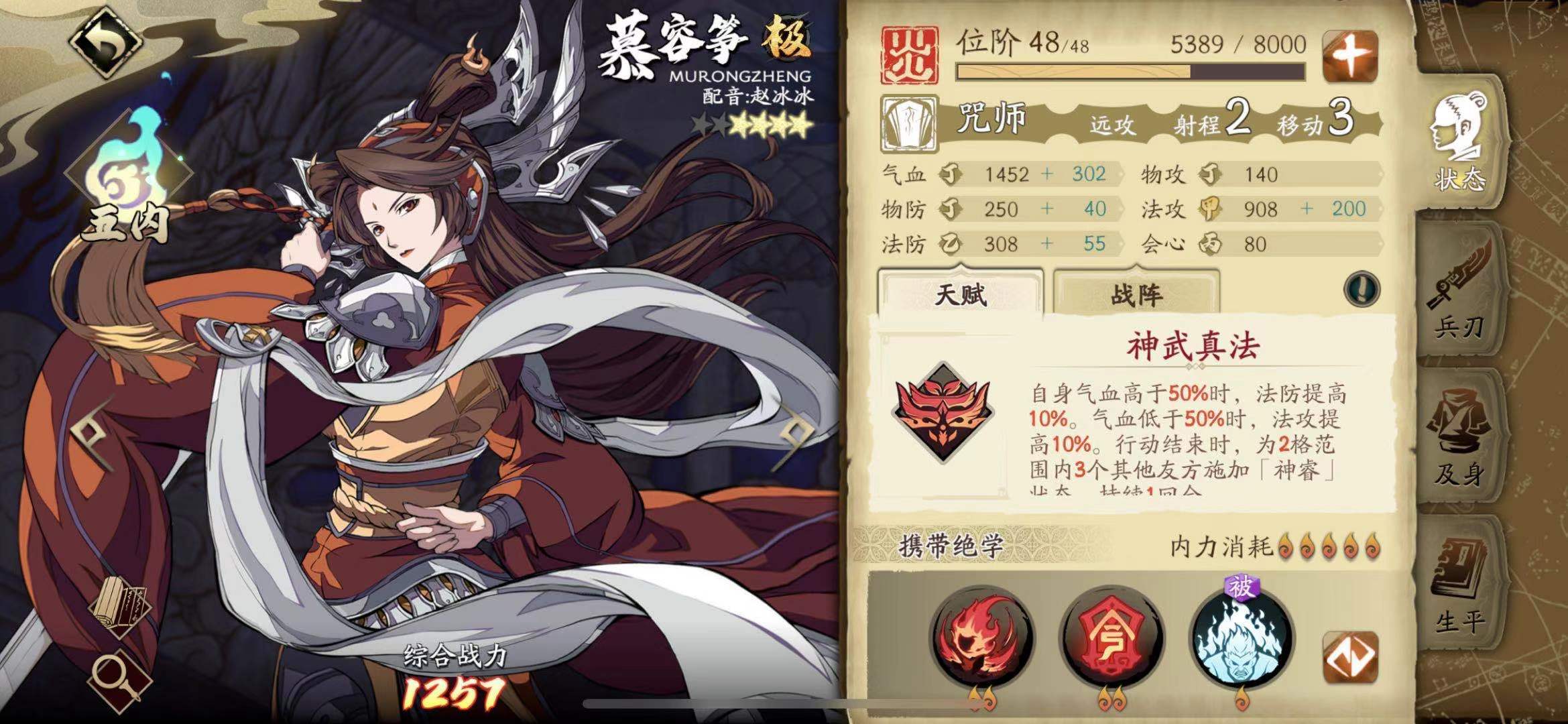 慕容筝属于火属性辅助角色,不仅辅助能力出色,自身伤害也颇为可观。她拥有一个兼具回血与加攻效果的技能,能为团队提升一定的输出能力,在搭配火系阵容时使用效果更佳。