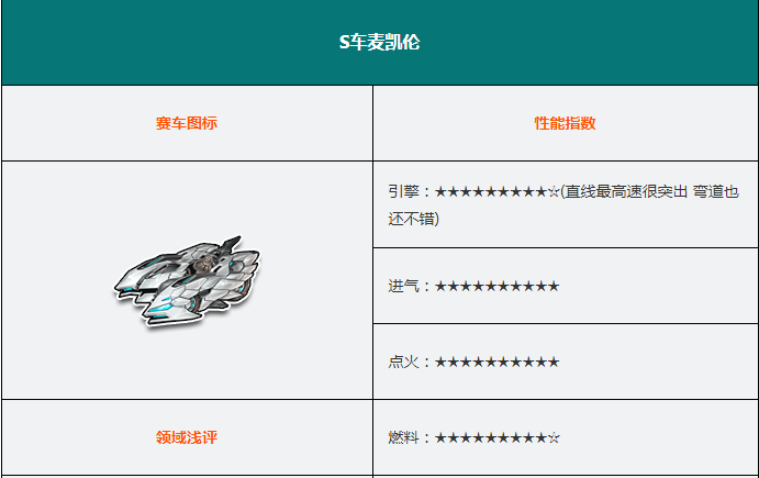 天机线的速度处于中端水平,集气性能出色,车身外观也还不错,冲刺时的视觉效果很亮眼。它属于中段S车,美中不足的是车身给人略微沉重的感觉,喷气时车身姿态变化不大,尾部设计也没有特别出彩。不过它的集气能力依然优秀,综合性能还是很稳定的。