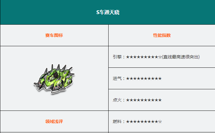 通天晓是阿尔法的升级版。这款赛车速度更快、集气效率更高,不过在操控触感上没有特别突出的表现,属于速度型S车。它通体翠绿色的外观搭配小巧的车体,给人一种仿佛在风中飞驰的轻盈感受。
