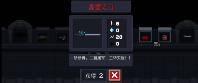 这个兵器的特点是耗能高、伤害大,属于一次性使用的类型。用过之后就会变成普通的白色武器,但它绝对是用来一击秒杀boss的最佳选择!要是这把白色武器的攻击有机会触发重铸熔炉的话,大概率能重新变回红色武器!