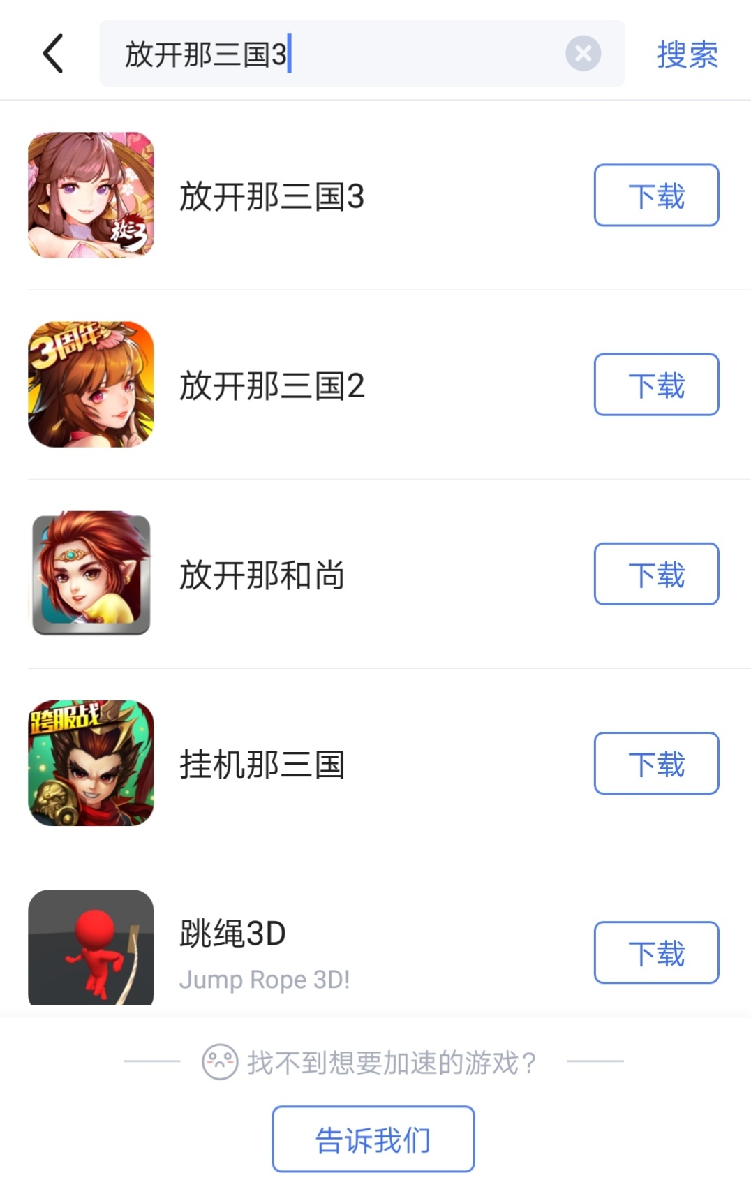 首先,启动biubiu加速器,进入主界面后,点击屏幕右上角的搜索框,输入“放开那三国3”进行搜索,待搜索结果出现后点击进入对应页面,接着点击“立即下载”按钮,即可开始下载放开那三国3的安装包。