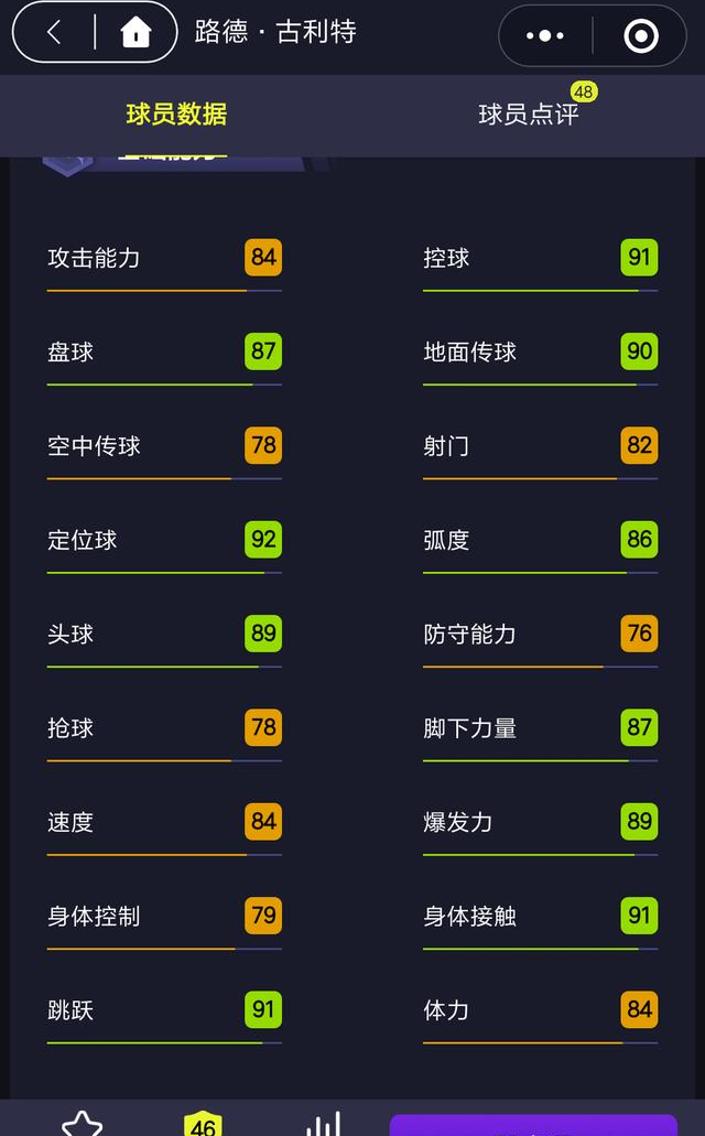 古利特在进攻属性同样是相当的耀眼,高达89的头球平均85以上的双速让他的前插打击具有要挟,即能作为球队的攻防转化点,也能够最好的担负打击的支点。