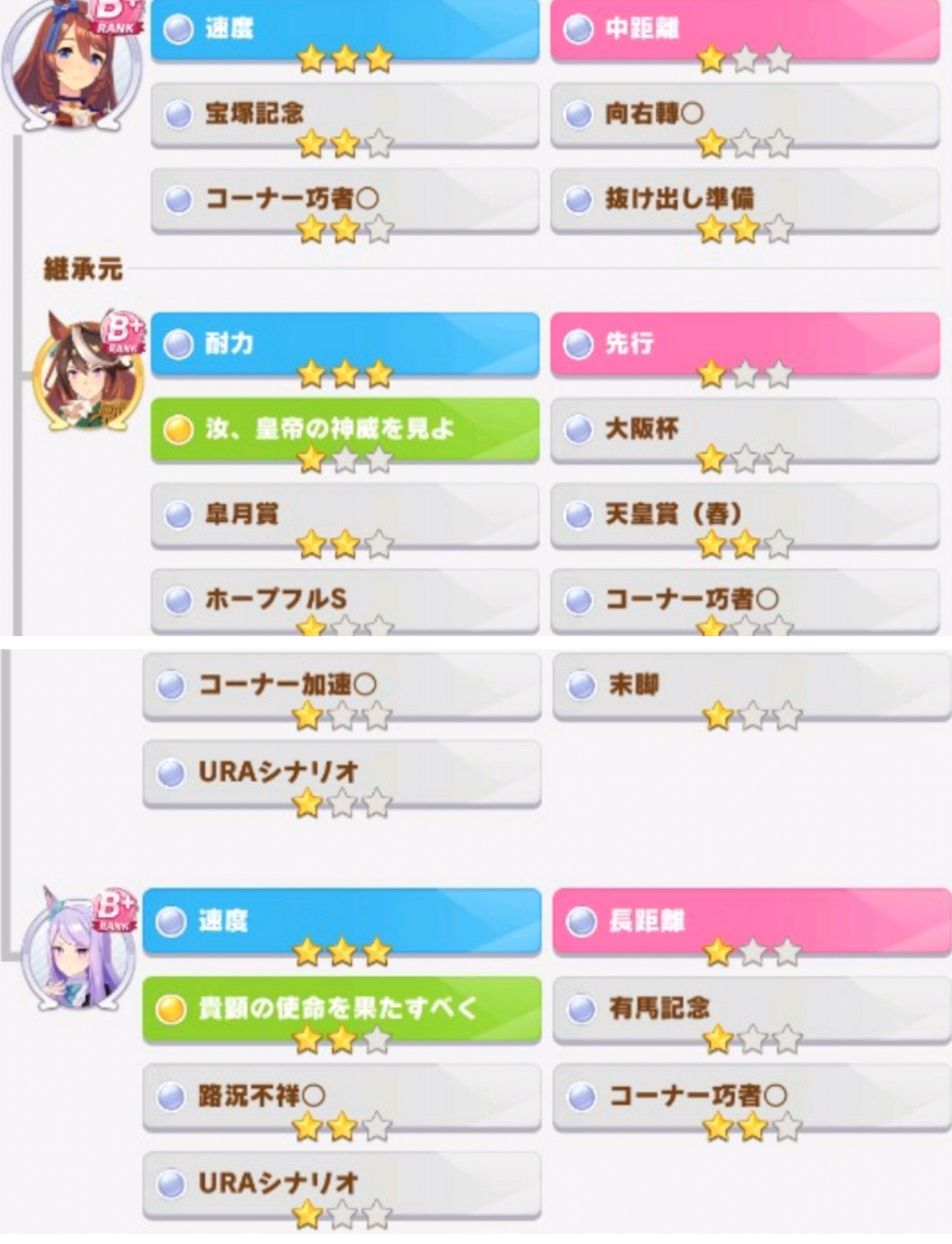 游戏中的因子会对赛马娘养成的诸多方面产生影响,像属性加成和技能继承都包含在内。这些因子是从父母辈以及爷爷奶奶辈那里继承而来的。