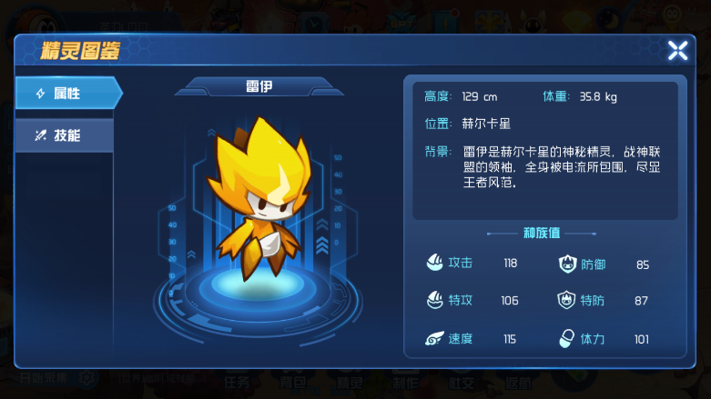 (5)雷伊:作为电系精灵里的王者,同时也是传说级别的精灵,雷伊在竞技场和副本中都有着极为重要的作用,是新手玩家手中最强的战力之一。