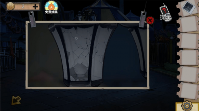 接下来前往玩具车的位置,那里有个盒子,我们按照上图的指示点击它完成操作;然后去到鬼屋,这里的灯光和摩天轮的灯光相对应,我们根据摩天轮的灯光样式进行填充;之后再回到玩具车那里,取走玩偶的头部。旁边的箱子里有拼图,完成拼图后,前往旋转木马处,取下它的翅膀,安装到鬼屋玩偶的后背;接着再次回到旋转木马那里,用钳子打开帐篷,进入后拿到小刀,再上楼梯取锤子,用锤子砸开地板拿到把手。下方有个盒子,将玩偶放进去并按下开关,记住此时玩偶的动作;之后拿锤子去砸恶魔雕像,获取闹钟。箱子的密码是45076。