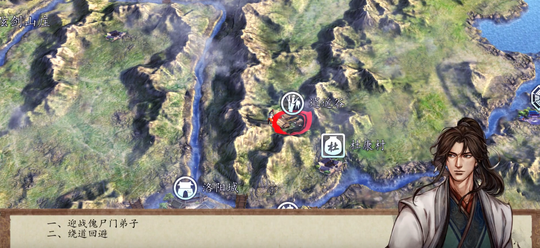 傅剑寒首次登场是在洛阳的酒馆之中。玩家在华山派完成相关任务后,便能在这家酒馆里目睹傅剑寒与乾坤大师斗酒的场景。在此处,建议玩家先不要直接上前与他们搭话,而是稍作等待,之后再去找酒馆下方的两位酒客,以此来触发后续剧情。在这段剧情里,玩家的同伴荆棘会和傅剑寒展开一场打斗,无论这场打斗的结果是输是赢,傅剑寒都会表明自己接下来要前往杜康村。