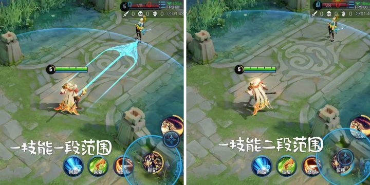 杨戬一技能第二段施放范围还在比第一段远一些,如果被杨戬一技能第一段命中,交闪现也非常难逃脱追杀。
