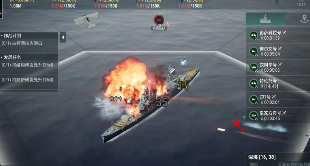 当玩家击沉对方所有驱逐舰后,即可对敌方大后方的护卫舰或巡航舰发起进攻。不过不建议直接攻击敌方战列舰,因其防御属性过高,很可能导致玩家无法按时完成关卡。而在成功摧毁敌方大后方的舰艇后,玩家就能赢得该关卡的胜利。