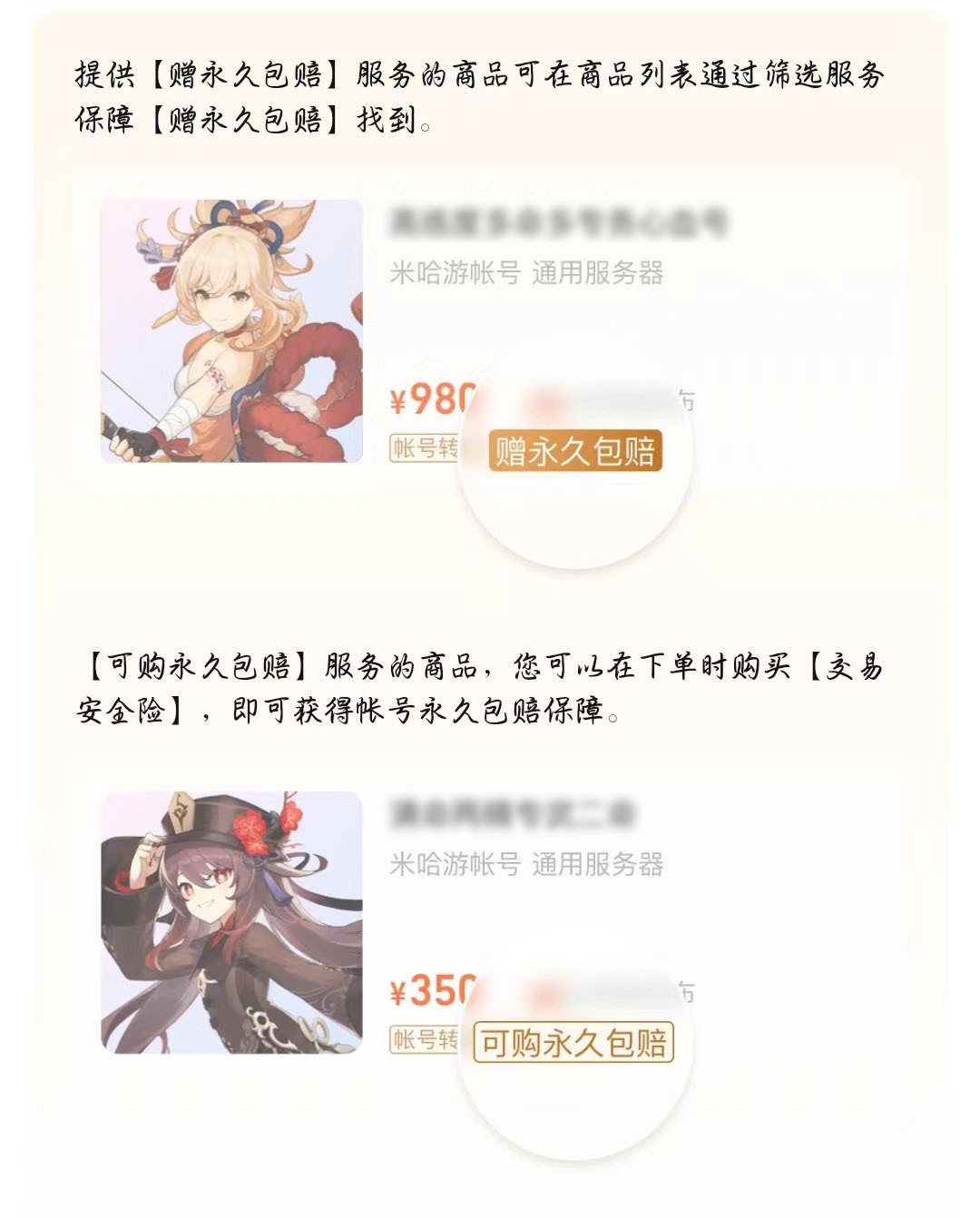 交易猫平台对部分商品提供永久包赔服务,大家在平台买卖账号时无需担心交易问题,遇到的各类问题基本都能妥善解决,平台还有24小时客服随时提供帮助,即便出现状况也不用焦虑,交易猫始终致力于为用户打造快捷又安心的交易体验。