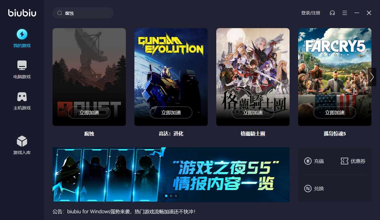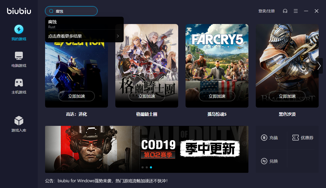 第三步,智能模块加速更新速度快。Biubiu会伴随游戏同步更新,像腐蚀这类同类端游更新频率较高,为了适配出最优的加速效果,软件也会经常进行更新。
