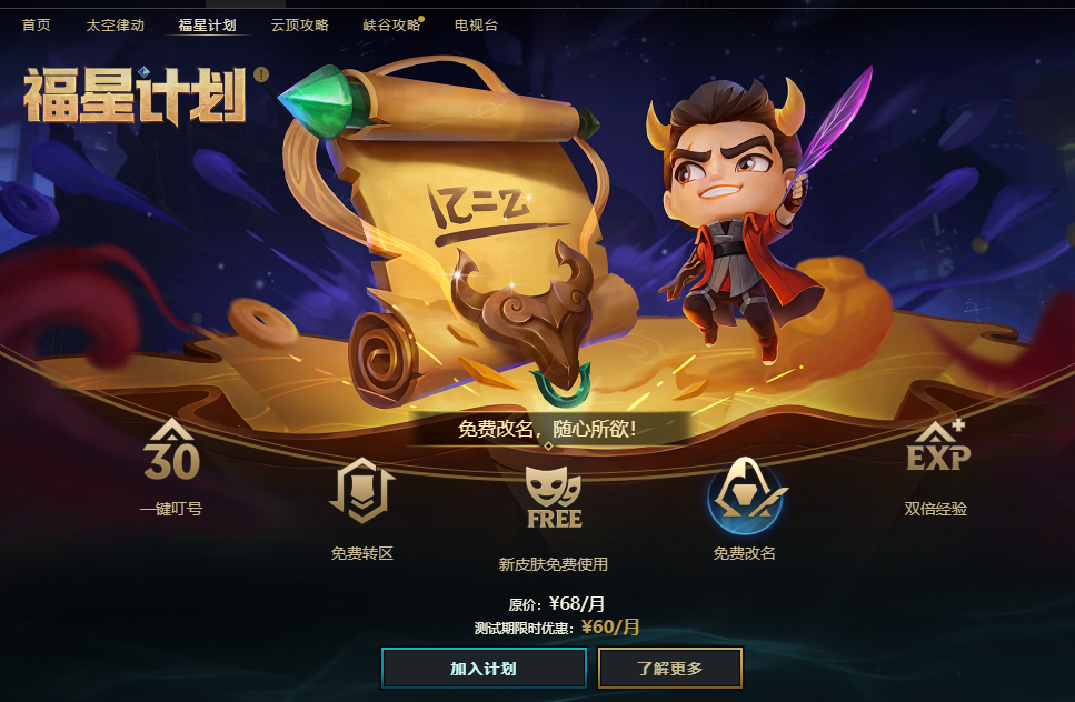 等我们成功开通福星计划后,每个月都能免费获得一次改名机会,到时候就能随意换成自己喜欢的名字了。不管是战队名、和朋友开黑的名字,还是跟对象用的情侣名,都可以。但要留意的是,这个改名机会能保留到会员到期后的180天,只是改名卡下架期间没法用。所以想改名的朋友,一定要注意好改名的时间。