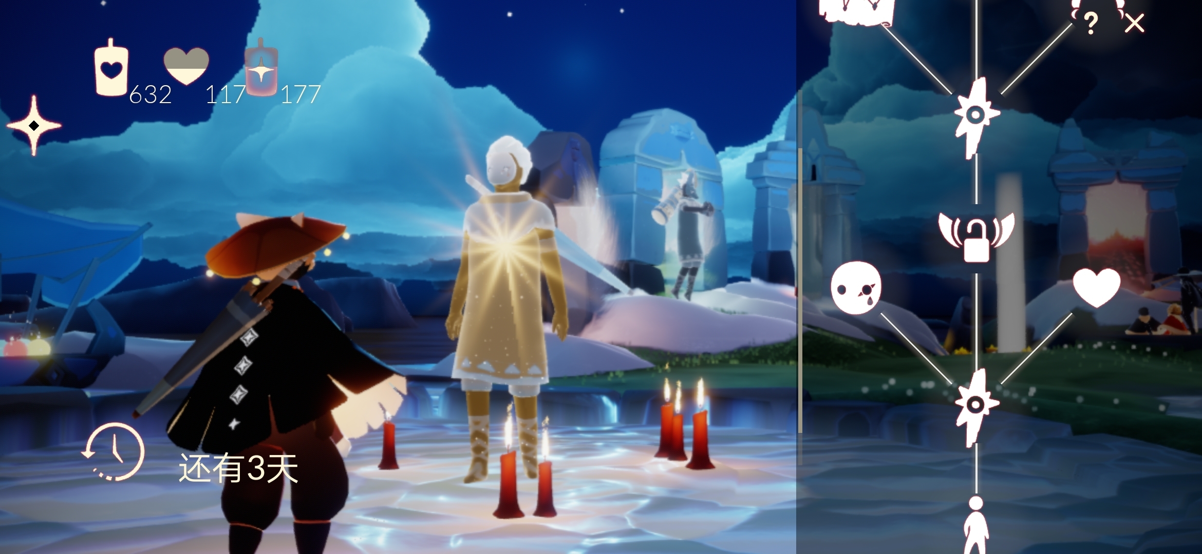 3、翅膀升级需等复刻先祖降临,通过与先祖兑换来获取永久光翼。几乎每个复刻先祖的节点都得用升华蜡烛解锁,且每个节点都能得到一个永久光翼。每次解锁要消耗两根升华蜡烛,解锁完成后,在重生之路就能领取先祖赠予的永久光翼。