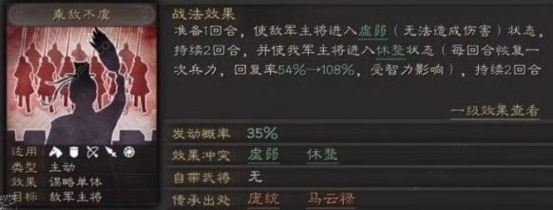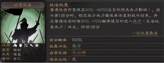 战术解析:马云禄具备出色的战斗技巧,尽显鸱苕凤姿之态。经测试显示,在实战场景中,她的增益效果(buff)能在后续数回合内叠加至80%-100%区间;该增益状态下的攻击力可达普通攻击的两倍,且支持连续攻击,其输出能力毋庸置疑。进入第5回合时,马云禄会触发锁定对手的机制,大幅提升自身攻击精准度。不过,由于她属于新手武将范畴,若想在第五回合后仍维持高额攻击力,就需要队友搭配强度较高的武将及适配战法来提供支撑。