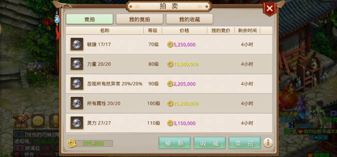 最后一种方法我们可以从拍卖行里面看他今天拍卖什么东西,如果有法宝的话,就可以竞拍了。