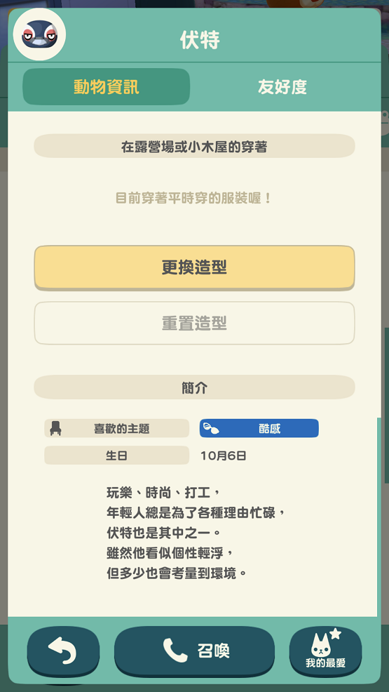在动物图鉴里,玩家能够查询到动物的名称以及它们的属性,动物属性涵盖自然风、华丽风、摩登风、老旧风、公共风、奇幻风等多种类型,不同风格的动物会偏好对应风格的家具物品。