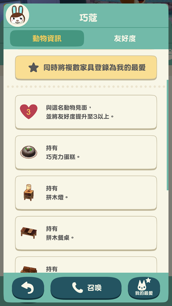玩家也能依据动物种类开展查找,还可以把动物们按照友好度、宾客优先、服装优先、特别愿望优先、主题的顺序进行排列,方便玩家迅速了解小动物的情况。