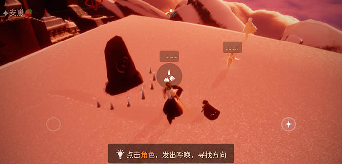在对应的位置上,小伙伴们会看到一块立着的石碑,石碑旁边摆放着白蜡烛,这里就是对应的冥想点位。接下来,大家走到石碑的光圈里坐下,然后完成相关的问题,这样就能完成一个冥想任务了。