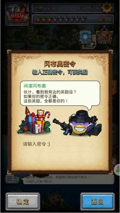 二、系统每日都有福利,每日签到偶尔会赠送碎片。另外,还能通过右上角齿轮图标里的密令功能来获取,该密令中包含大量冈布奥碎片。