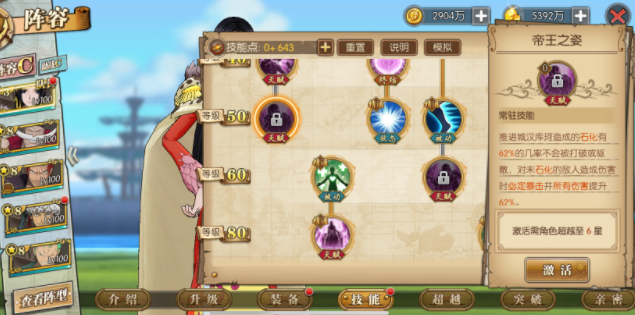 为女帝提升基本面板属性,本身免役石化特效,女帝败北的时候,会为路飞提升100%血量,但是天赋主要就是为女帝提升面板属性,按目前新世界路飞来讲,路飞是难于生存的,仅有是祭献路飞,除非路飞要提升或出新路飞。