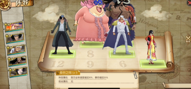 从角色面板来看,新女帝的精准定位是控场爆发、对位先行,六维面板整体偏向辅助与爆发,属于依赖高闪避和绑定路飞才能保证生存的角色。女帝的强势之处,源于她的高闪避率、对队伍的辅助特效(减魂玉),以及自身强力的爆发伤害。不过,女帝要发挥这些强力特效,必须保证高速,且尽量拿到一速,否则她的技能效果会大打折扣。因此,其他上阵角色的速度需要进行调整。
