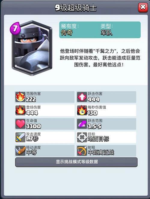 超级骑士是一张高贵的传奇卡,和许多卡组有着不可进击的搭配,同样是当今最厉害的肉盾卡。