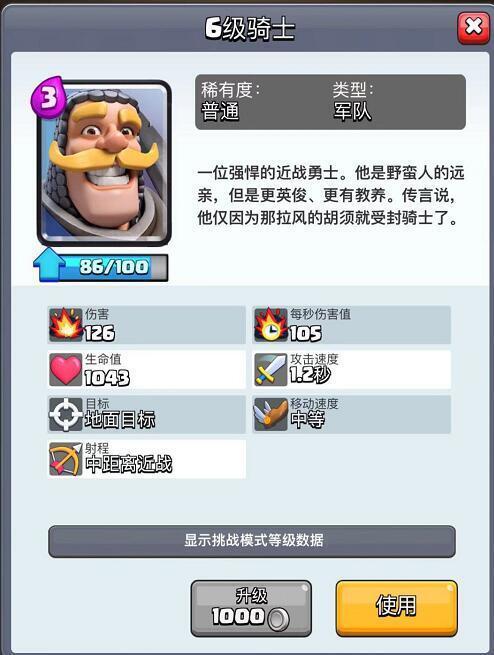 骑士是一位萌新引导者,他会带领每一位刚入坑的朋友,踏入荣耀的竞技场,为皇室争夺声誉。在他引导下的新手数量众多,甚至有些新手后来成长为更高级的战略大师,不断挑战更强大的王国,赢得的奖杯不计其数,为皇室夺取了许多城池。