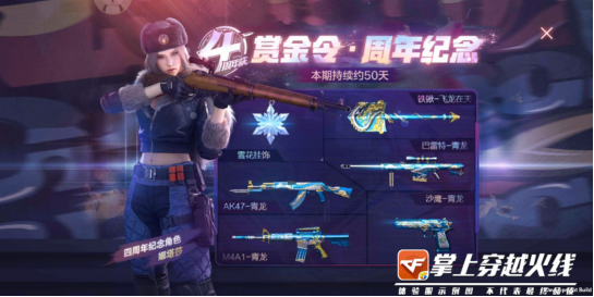 【珍稀道具暖心赠】赏金令S4赛季周年纪念的核心奖励相当丰厚,纪念版武器M4A1-青龙、巴雷特-青龙以及沙鹰-青龙均可免费领取,还有铁锹-飞龙在天诚意奉送。青龙系列武器不仅性能出色,颜值更是惊艳,关键是具备极高的收藏价值与纪念意义,各位CFer可千万别错过这波免费福利呀!