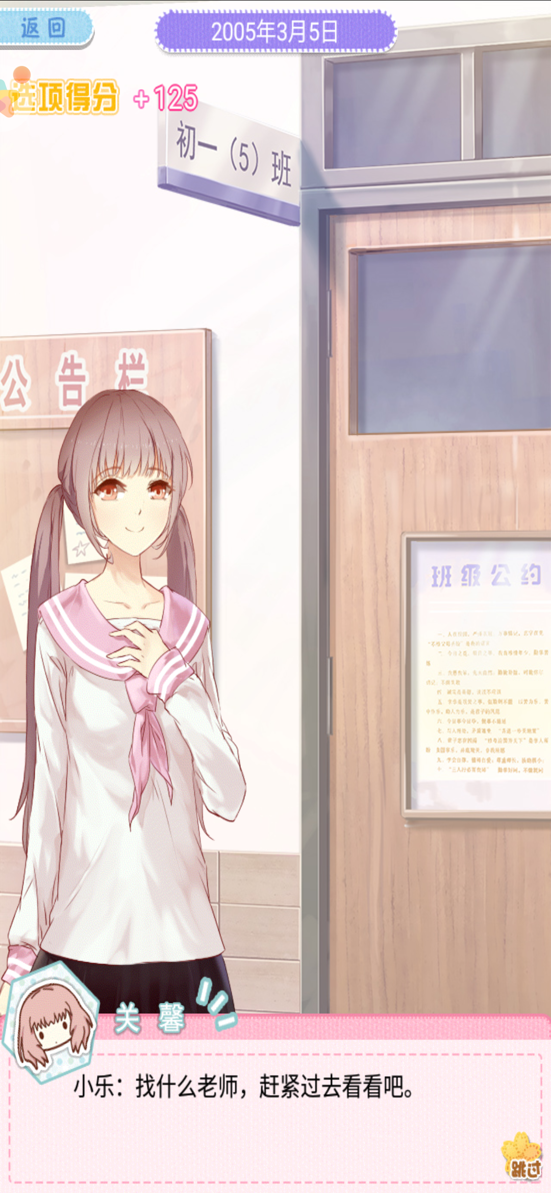 除了搭配本身,大家还能在搭配剧情上花点心思。妖精的衣橱第九关的搭配剧情是这样的:有小混混来找林天的麻烦,小乐过来给关馨报信。这一关的问题选项对应关馨的两个反应,分别是A选项“赶快去看看”和B选项“告诉老师”。按常理判断,选第二个选项似乎更合理,但妖精的衣橱是一款恋爱换装手游,按照言情小说的常见套路,选第一个选项才是正确的。要是大家想获得加分,记得选第一个选项哦!