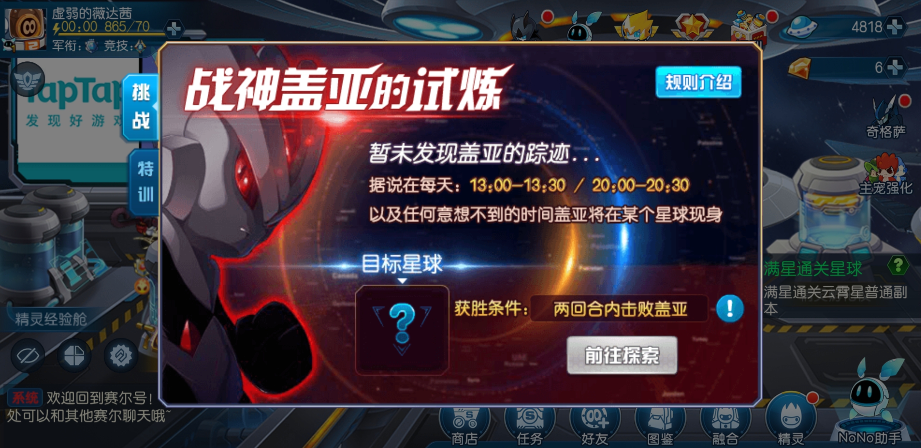 首先盖亚并非随时都能遇到,它只会在特定时间出现,具体是周一和周五,而且出现还分不同的时间段。玩家要是想挑战盖亚,第一步得先在正确的时间点碰到它才行。