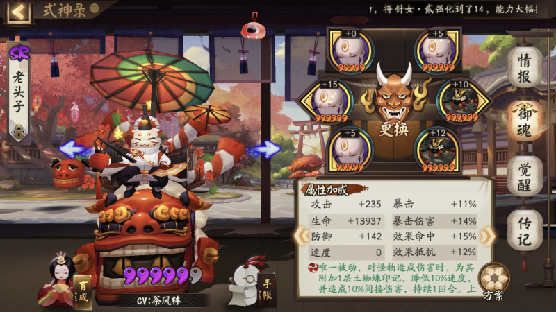 这套阵容热度不高,所以兔子最好带招财;毕竟是第六层,妖怪的输出、血量和御魂都不算特别强,拉条速度不用追求太高,但为了给拿皮肤铺垫,还是建议保持210以上以防翻车。要是带招财会影响速度,那还是换散件拼速度更稳妥。另外老头也能选招财,有椒图在的话,奶量太足反而会造成资源浪费。