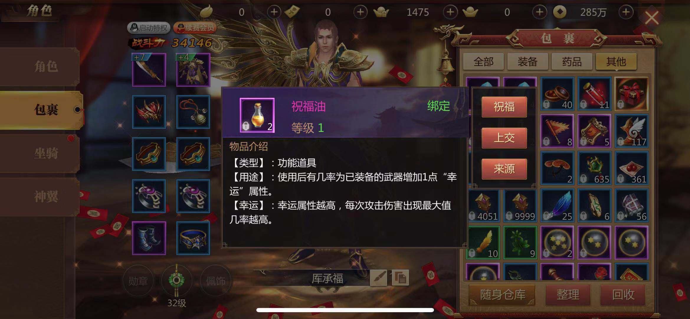 主线任务里也会给玩家发放祝福油。要是玩家遇到难度较高的主线任务,除了金币和经验值,还能拿到额外奖励,这其中就包含祝福油道具。玩家只要顺着主线任务一路推进,也能攒到不少祝福油。通常情况下,祝福油得准备三十瓶以上才够用,毕竟提升运气需要多次使用祝福油来尝试。