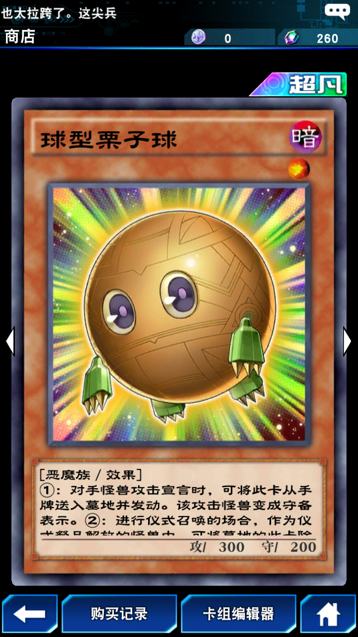 栗子球在手牌时能发挥类似敌人控制器的效果,既能麻痹对手的警惕心,自身强度也不容小觑,甚至还能在墓地中为仪式召唤提供助力。