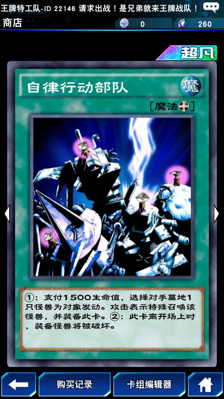 自律行动部队是当前版本龙族卡组里的一张强力卡牌,它不仅能召唤强力上级卡牌,还具备限制敌方墓地的效果。