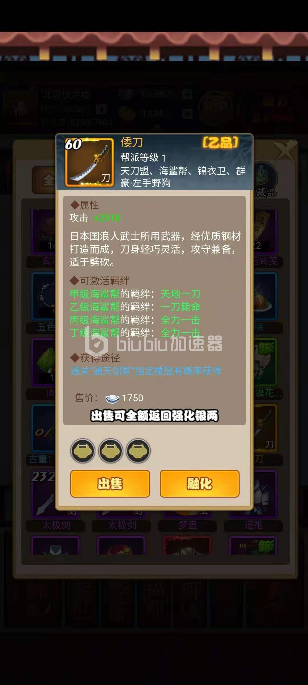 最终的选择是建议两面夹击,如此便能开启最后的战斗。对于海鲨帮这个门派,我觉得它相对较弱,即便自身战力不足,我们也可以借助阵型来应对。海鲨帮使用的武器是刀,刀在所有武器里伤害最高,不过它的缺点也很突出:一是防御薄弱,二是缺乏穿透力与溅射效果,完全属于单体伤害类型。