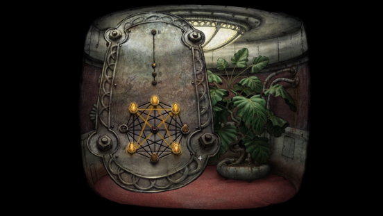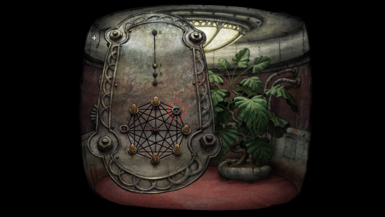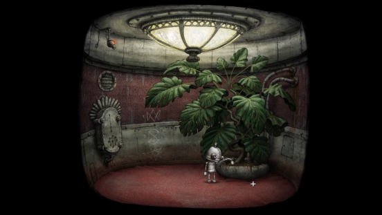 穿过由上关守卫看守的大门后,机器人进入了一部电梯,可这部电梯却纹丝不动。在解谜游戏里,每当进入新关卡,首先得学会观察周边环境。右侧墙壁上有个需钥匙开启的盒子,中间还摆放着一盆长势旺盛的盆栽。左侧墙上挂着一个盒子,这应该就是启动电梯的控制开关了。这个开关的使用规则是:若想前往某一楼层,只需将开关调整到该楼层对应的专属标志即可。
