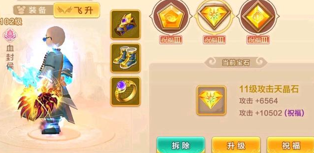 飞升晶石的升级与祝愿操作,比普通装备晶石要简单不少,很容易就能升到顶级,祝愿等级也能轻松达到三级。所以当角色达到95级完成飞升后,晶石力量应该优先用来升级飞升晶石。另外,飞升晶石的所有属性中,祝愿带来的占比都相当高,这能显著提升角色的攻击能力。