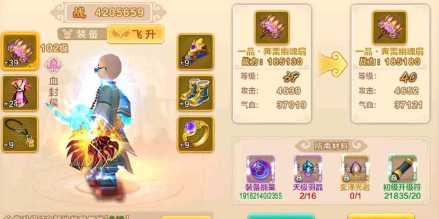 飞升装备的升级和强化都需要大量原料,但属性提升幅度却很小,尤其是升级环节。所以建议尽可能在早期就把飞升装备升到9级,强化到12级就足够了。