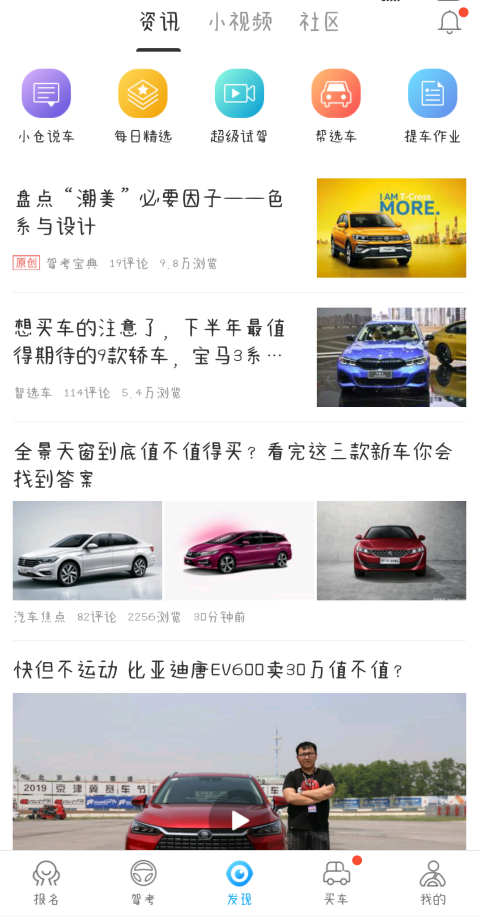 3.在“发现”板块,你能获取最新的驾考资讯以及各类汽车小知识。此外,还可以进入“社区”与其他学员交流学车经验和技巧,或者在“学车问答”里发帖提问。