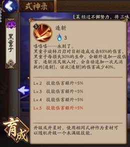在小小黑血量较低时,使用【连斩】几乎可以将对面的脆皮式神直接带走。