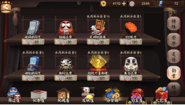 勋章兑换:每周一个。