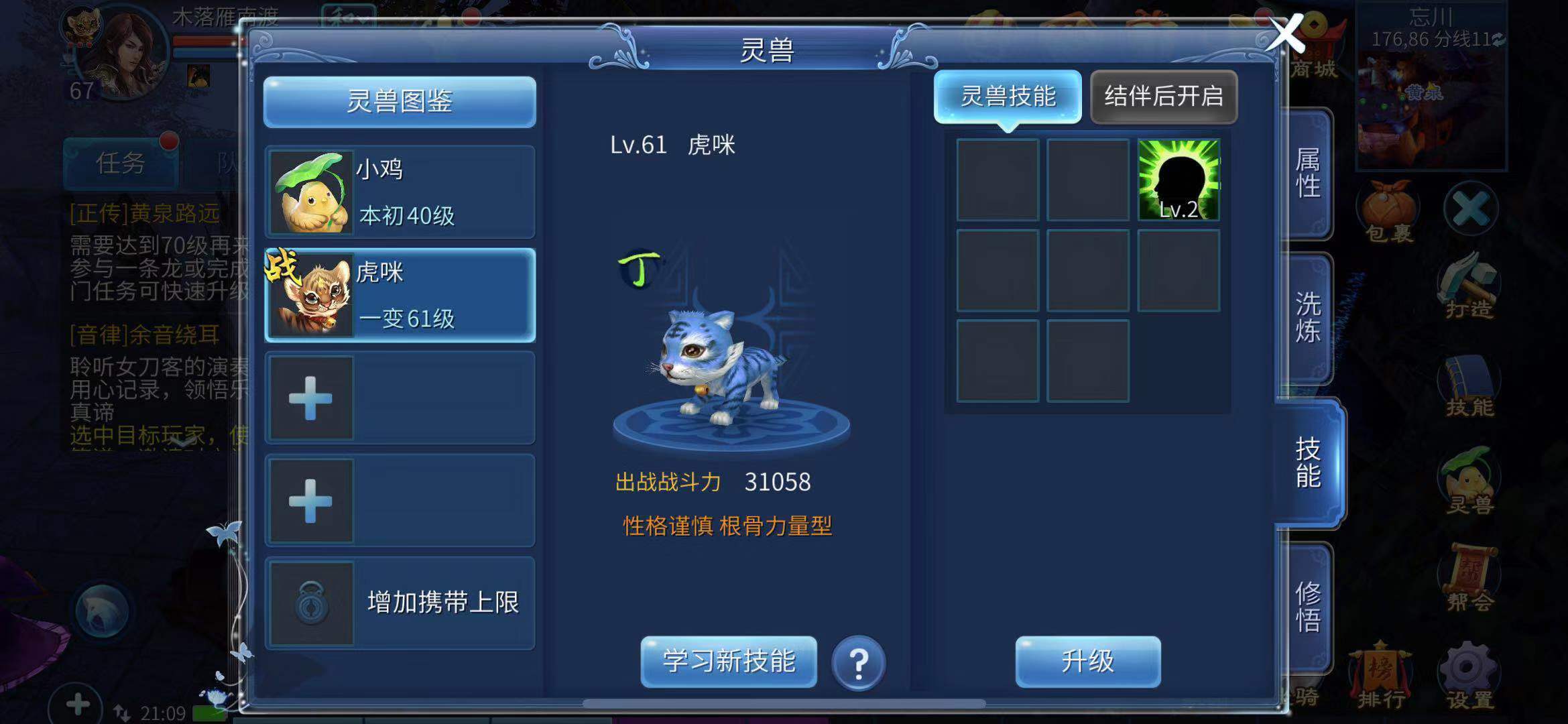 五、让灵兽学习技能并提升技能等级