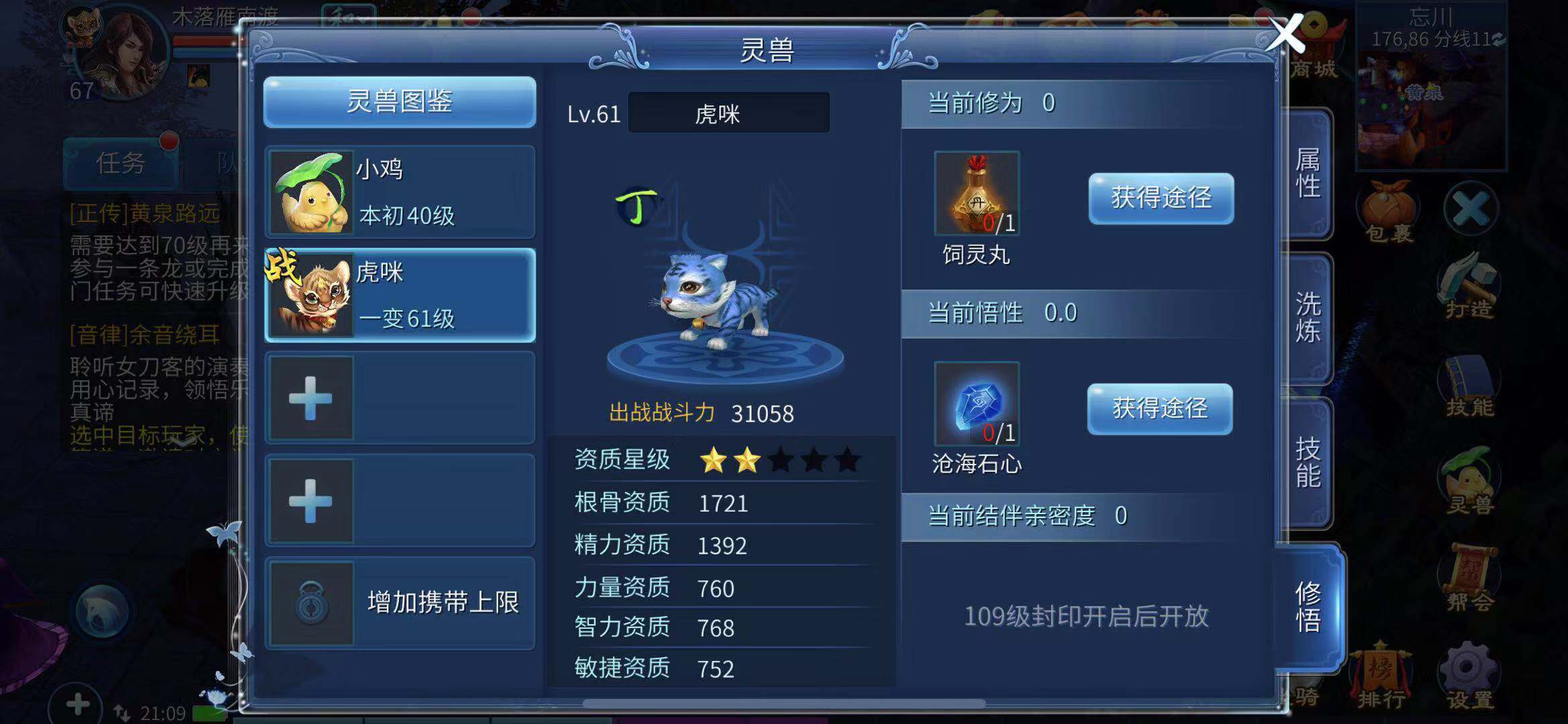 玩家也能在灵兽面板借助修悟功能直接为灵兽添加属性值,在该界面中可以利用饲灵丸与沧海石心对灵兽开展直接培养,培养之后会提升灵兽的修为和悟性,这样就能用于提高灵兽的各项资质,进而提升灵兽的资质星级,以此实现增强灵兽战力的目标。