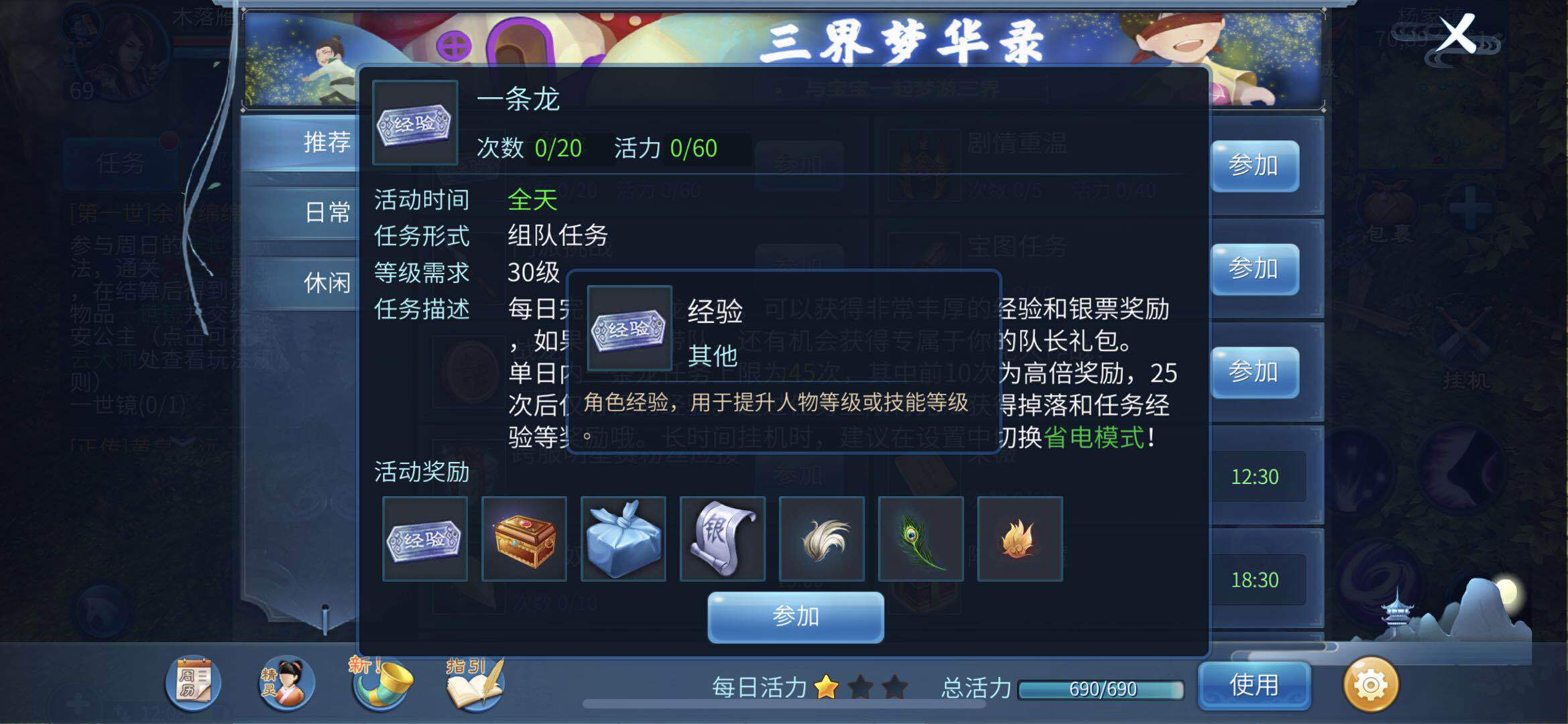 一条龙任务每日可完成四十五次,但仅前二十五次提供任务经验:其中前十次经验最丰厚,为多倍奖励;中间十次是常规经验;最后五次则只有少量经验。该任务以五次为一环,中途退出将不计入进度。由于一条龙任务耗时较长,因此建议玩家优先完成它。